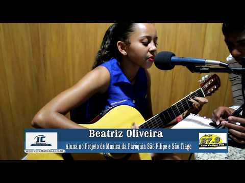 Beatriz Oliveira, aluna do projeto musical da Igreja Católica cantando ao vivo na Radio São Felipe FM